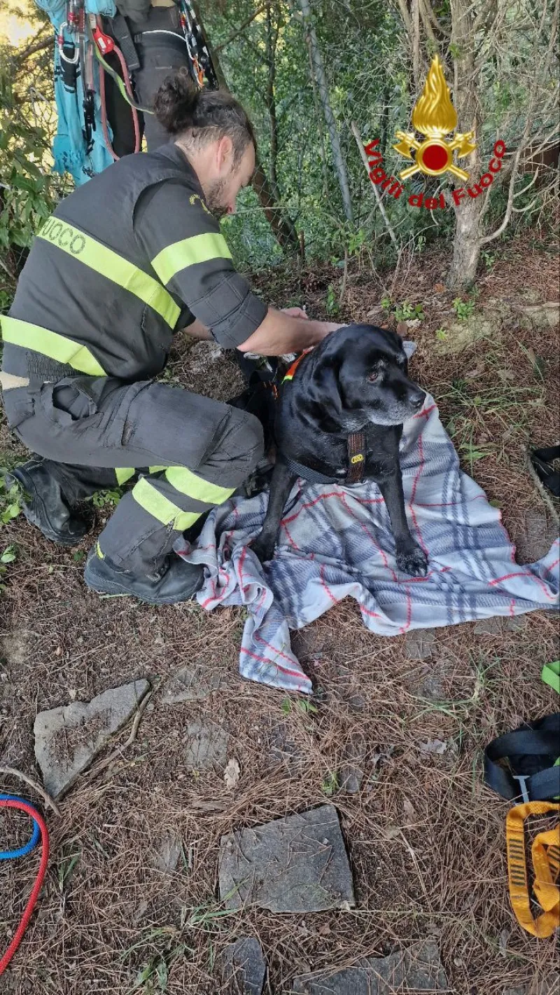 Anche in quel frangente l'intervento dei Vigili del Fuoco è stato salvifico. Con professionalità, il povero segugio è stato recuperato e liberato per poi poter riabbracciare la sua umana.