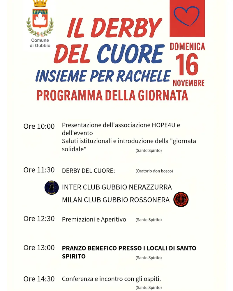 Tra le iniziative in programma, spicca quella promossa dal Lions Club Gubbio, in collaborazione con il gruppo “Burraco e Dintorni”, che organizza un Torneo di Burraco Solidale per raccogliere fondi da destinare interamente a Rachele e alla sua famiglia.
