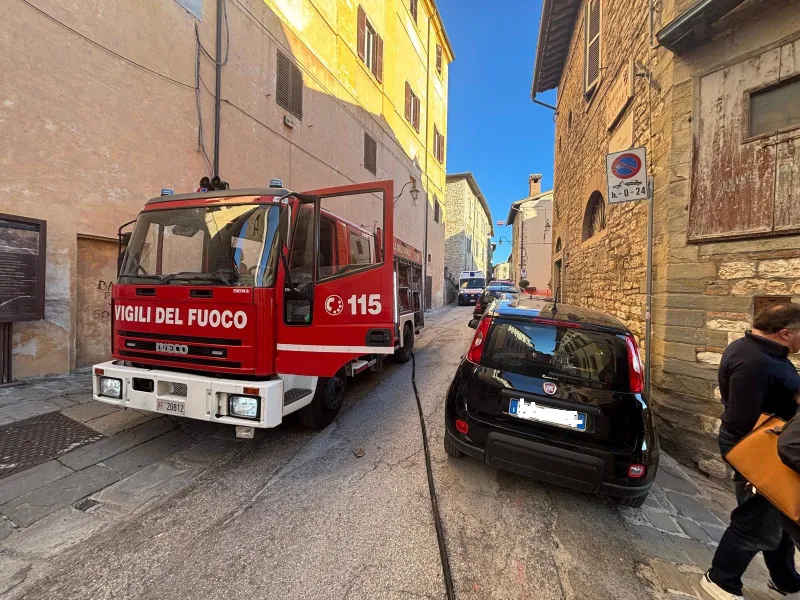 L’allarme è scattato nel primo pomeriggio: dal primo piano dell’hotel, precisamente da un’area spa privata annessa a una suite, si sono sprigionate fiamme e fumo denso che hanno costretto all’immediato intervento dei Vigili del Fuoco di Gubbio, supportati da squadre specializzate con autorespiratori e attrezzature per incendi in ambienti chiusi.