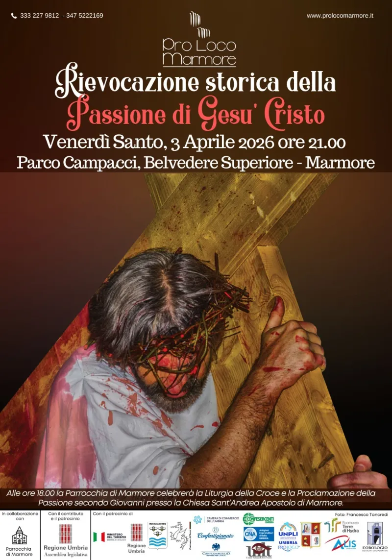 Le festività pasquali sono ormai alle porte e l'Umbria si prepara a celebrarle con intensità. Così sarà anche nel suggestivo scenario naturale della Cascata delle Marmore, dove per il venerdì santo torna un appuntamento ormai consolidato che unisce spiritualità, cultura e valorizzazione del territorio. Si tratta della rappresentazione itinerante della Passione di Gesù Cristo, giunta quest'anno alla sua decima edizione e organizzata dall'attivissima Pro Loco di Marmore. Un'esperienza diventata punto di riferimento per la comunità così come per i numerosi visitatori che ogni anno richiama. Oltre 110 i figuranti che hanno già aderito, compresi i bambini, questo ci ha confermato la presidente della Pro Loco, Manola Conti. L'appuntamento è per venerdì 3 aprile dalle 21 alle 23 al Parco di Campacci.