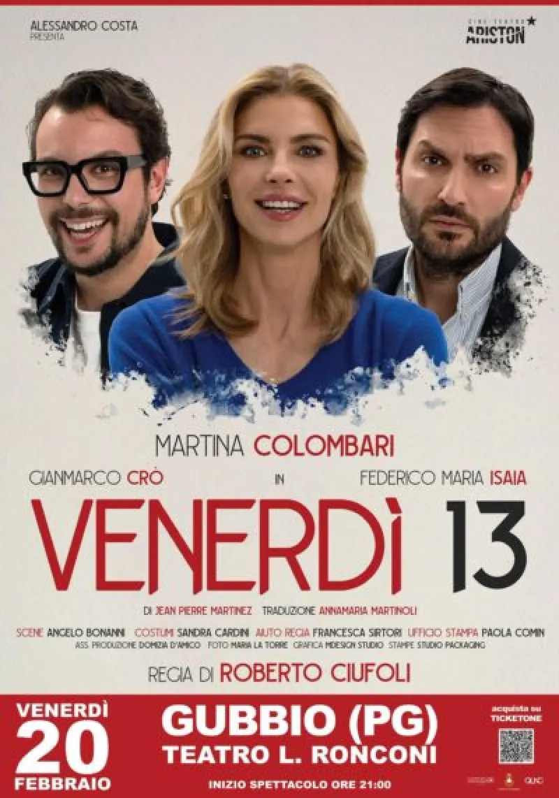 Venerdì 20 febbraio 2026 alle ore 21, il Teatro Luca Ronconi di Gubbio ospiterà il primo appuntamento di “Sorrisi in scena”, un progetto che nasce con un obiettivo chiaro: rendere il teatro accessibile a tutti, trasformando la serata a teatro in un’esperienza di leggerezza, condivisione e divertimento. A inaugurare il percorso sarà uno degli spettacoli più attesi del cartellone, “Venerdì 13”, con Martina Colombari protagonista, affiancata da Gianmarco Cro e Federico Isaia, per la regia di Roberto Ciufoli.
