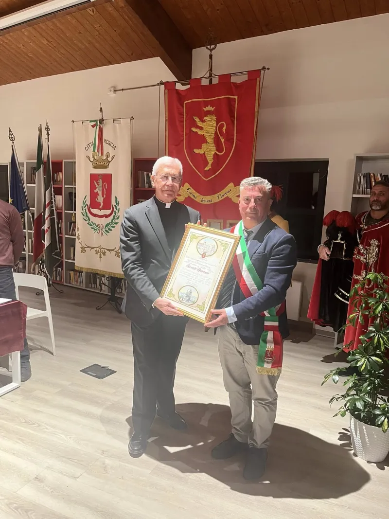 "Non un atto formale - ha sottolineato il sindaco Giuliano Boccanera durante la cerimonia - ma l’espressione autentica di un legame consolidatosi nel tempo, specie in una delle pagine più tristi della nostra recente storia. Con discrezione, forza e amore Lei è stato accanto alla nostra gente - ha ricordato -. Non ci ha mai lasciati soli; il suo impegno concreto per la ricostruzione, non solo degli edifici ma specie delle relazioni, sono stati per noi elementi di speranza e forza. Ha pregato con noi e per noi, ha lavorato instancabilmente per la rinascita della nostra città. Lei è uno di noi, è parte della nostra storia, delle nostre fatiche. Il popolo di Norcia la abbraccia e la ringrazia. Oggi la Città le apre le sue porte come cittadino. Benvenuto a casa".