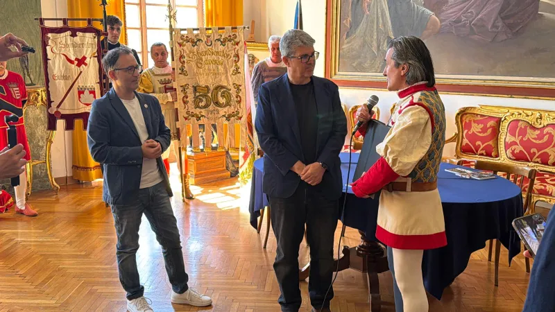 La partecipazione degli Sbandieratori di Gubbio si è inserita in un programma ricco di momenti significativi. Dall’accoglienza istituzionale con lo scambio dei doni fino al corteo storico che ha attraversato la città, culminato con le esibizioni nei principali spazi pubblici.