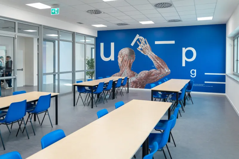Il nuovo polo universitario è stato realizzato dalla Ripartizione Tecnica di Ateneo e suddiviso in due edifici all’avanguardia: uno completamente dedicato all’attività didattica, con cinque ampie aule, una moderna aula studio e spazi per uffici amministrativi e direzionali, e uno progettato per le attività motorie e sportive, con una palestra di 670 metri quadrati dotata di pavimento in parquet sportivo a garanzia di comfort e sicurezza. L’intero complesso vanta 559 posti complessivi, di cui 11 riservati a persone con disabilità, confermando l’attenzione dell’Università all’accessibilità e all’inclusività.