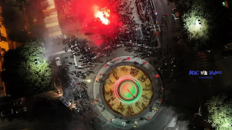 L'appuntamento ai tifosi era stato dato dal gruppo organizzato della Curva Nord alle ore 19:00 in largo Atleti Azzurri d’Italia. Il corteo è partito dal piazzale antistante al Campo Scuola per poi proseguire verso corso del Popolo e proseguire in piazza della Repubblica e Corso Tacito, fino ad arrivare piazza Tacito, dove il momento tanto atteso è stata l’accensione della fontana con i colori rosso e verde arrivato alle ore 21:15.