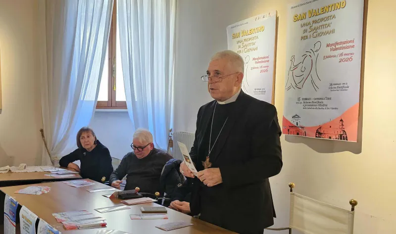 La Diocesi di Terni si prepara a celebrare solennemente San Valentino, protettore di tutti gli innamorati e santo patrono della città, di cui è stato anche il primo vescovo. Un momento identitario di unità, riflessione e spiritualità che quest'anno guarda in particolare ai giovani. Per la comunità ternana San Valentino rappresenta un'occasione di grande ispirazione, per fare propri i valori universali della sua testimonianza fatta di amore, carità, cusotodia - dell’amore, del matrimonio, della famiglia - nonché di coerenza, libertà religiosa, dialogo interreligioso e cura per la città. Il fitto calendario di celebrazioni ed eventi promossi dalla Diocesi in suo onore è stato presentato proprio oggi dal vescovo Francesco Antonio Soddu.