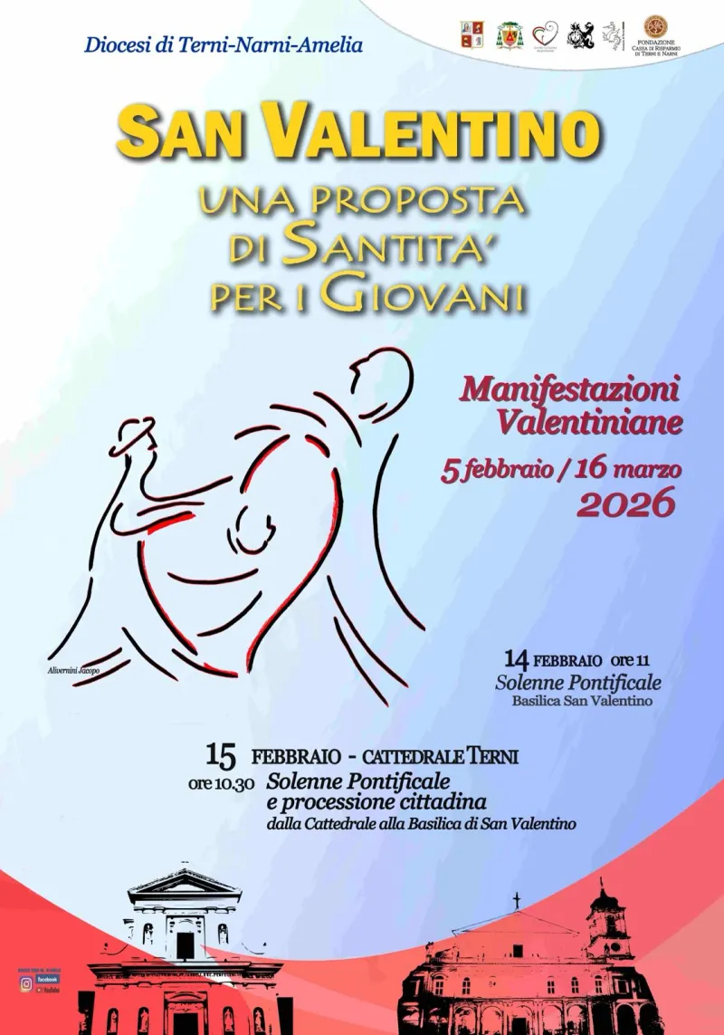 Il 14 febbraio, sempre in Basilica, il pontificale presieduto da Domenico Cancian vescovo emerito di Città di Castello mentre nel pomeriggio la nomina dell’Ambasciatore di San Valentino nel mondo 2026. In serata la traslazione dell’urna del Santo in Cattedrale, con l’accoglienza e la veglia di preghiera animata dai gruppi della Diocesi.